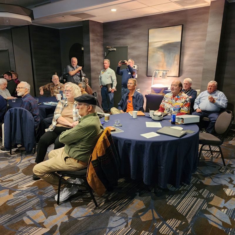 The 2025 Triangle Chapter Holiday party was held at the Stag Club in North Raleigh again this year. Our thanks to Bob Safrit for arranging the use of the facility. A well place sign on Ray Road alerted member where to turn to get to the facility. The facility was well decorated for the season. Marilee Sanderson and her committee organized the meal and table layouts. Pipers Tavern catered the meal with a choice of Chicken Francese and/or Salmon. The sides will be roasted red skin potatoes, green beans, sweet and unsweetened tea, rolls, and salad with ranch or vinegar dressing.