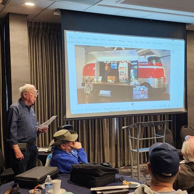 After the meal there were two short presentations, one of Dan and Jean Fuccella on their Jeep Treks around the US and a second of Dean and Less Tryon on their purchase, restoration and adventures with their Pontiac Woody. Glenn Ott prepared the Trivia Game question for the gift exchange this year. Do you know how many parts are required to be assembled for the Tak-A-Part T? The 2025 keeper of the Pink Elephant successfully disguised it for the new 2026 keeper. Many toys were brought by members for Toys for Tots.